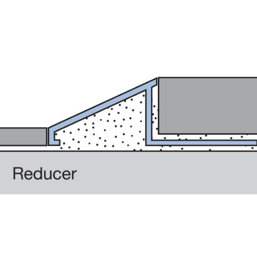 Reducer Trim that provides a smooth transisiton from tiled floors to lower floor coverings.